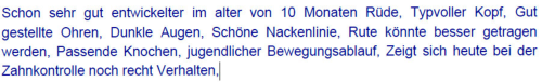 Colja von den Schimmelreiterspitzen hat am 03.10.24 das Licht der Welt erblickt. Er, seine Mama Boje, Oma Carla, Tante Anouk und Cousine Alea bilden ein tolles eingespieltes Rudel. Colja wird im Zuchtbuch unter der Nummer VDH/VDSp DS 24-0330 geführt. Als Sohn von Boje und Bojangles von den Eißeler Dorfspitzen weist seine Ahnentafel für die letzten vier Generationen den IZK 1,56% aus.Die Genetik ergab folgende Untersuchungsergebnisse:Die HD-Untersuchung ist mit dem Ergebnis HD-A2 erfolgt. Er ist also HD-frei.Colja besucht natürlich auch Ausstellungen. Hier seine Ergebnisse:1.Ohne Bewertung SG1 (= Sehr Gut) in der Jugendklasse bei der 19. Internationalen Rassehund-Ausstellung Oldenburg am 02.08.25:2.SG1 (= Sehr Gut) in der Jugendklasse bei der 23. Internationalen Rassehund-Ausstellung Rostock am 05.10.25.Mal sehen, wie er sich 2026 macht.