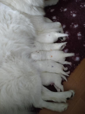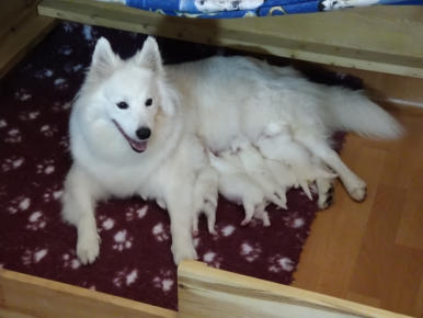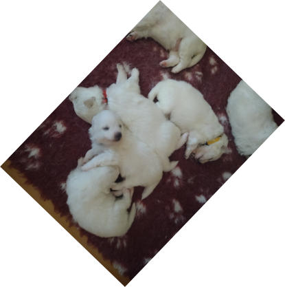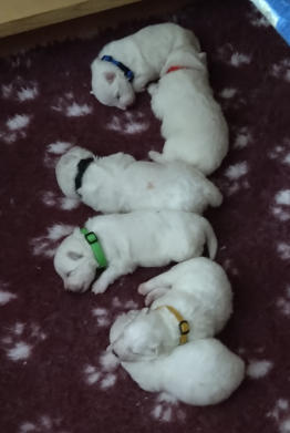 Rücken; jetzt mit farbigen Halsbändern.