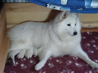 Die Uhr tickt … und so wollten wir es mit BOje ein letztes Mal wissen und ihren 2.Wurf in Angriff nehmen. Da unser C-Wurf mit ihr so wunderbare Welpen hervorgebracht hat, musste der Papa wieder BOjangles von den Eißeler Dorfspitzen sein, in den BOje und auch wir total verschossen waren und sind.Vom 26.10. bis 28.10.25 besuchten BOje und ich BOjangles und die Wiedersehensfreude war an allen drei Tagen groß. Es war wieder eine Verpaarung wie aus dem Bilderbuch. BOjangles und BOje umwarben sich gegenseitig, freilaufend in schönster Natur. So kam es „zum Äußersten“, ganz natürlich.Am 24.11.25 waren wir mit BOje zur Ultraschalluntersuchung. Diese bestätigte unsere Hoffnung, dass wir sie tragend ist und BOjangles Vater wird. Die kleinen Schimmelreiterspitze unseres D-Wurfes kamen am 24.12.25 zur Welt.